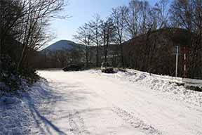 小沼先の通行止左、スキーリフト跡より、階段を登って行きます。
